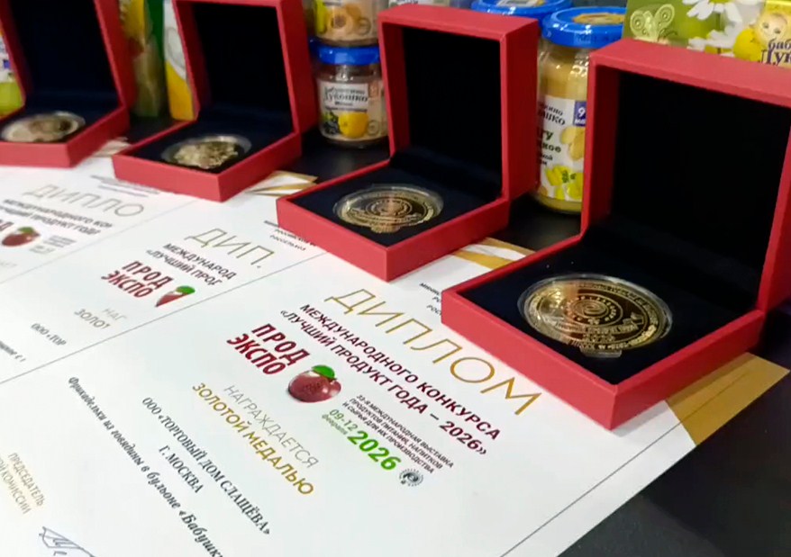 Продукция бренда «Бабушкино Лукошко» удостоена высших наград международного конкурса «Лучший продукт года — 2026». Торжественная церемония подведения итогов состоялась в рамках 33-й международной выставки «Продэкспо-2026», которая прошла в Москве с 09 по 12 февраля в МВЦ «Крокус Экспо».По итогам независимой экспертизы золотые медали завоевали четыре позиции детского питания «Бабушкино Лукошко».